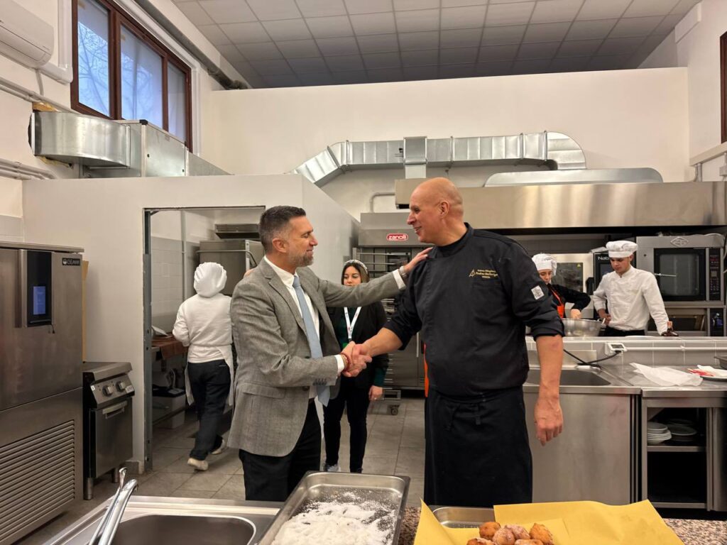 Auch die Politik ließ sich dieses süße Spektakel nicht entgehen. Sebastiano Costalonga, Stadtrat für produktive Tätigkeiten, besuchte die fleißigen Bäckerinnen. Er überbrachte die Grüße der Stadtverwaltung und lobte die enge Zusammenarbeit. „Diese Schule bereitet unsere Jugend perfekt auf die Zukunft im Tourismus vor“, betonte er sichtlich beeindruckt.